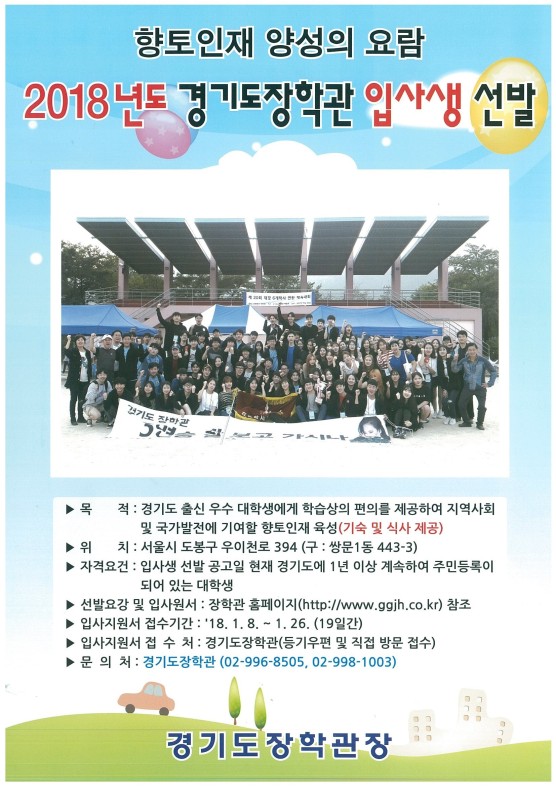 2018년도 경기도장학관 입사생 모집 안내