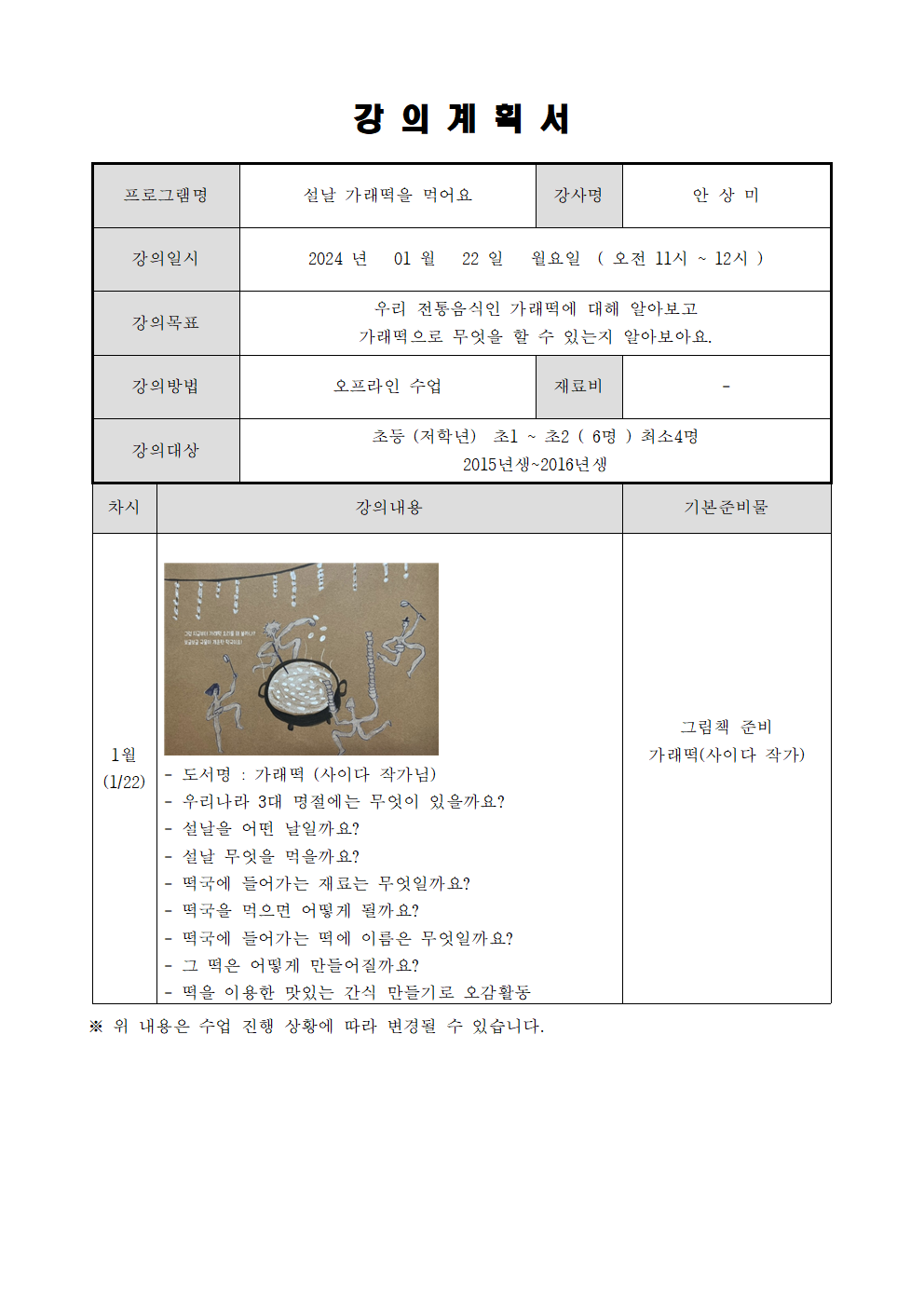 겨울방학 프로그램 - 설날 가래떡을 먹어요