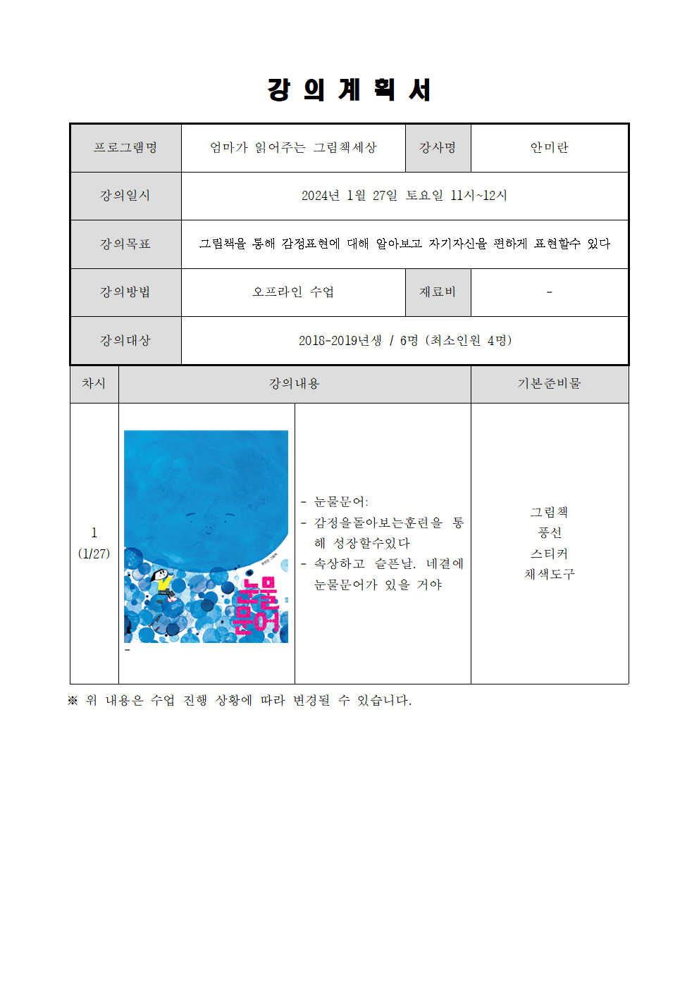 겨울방학 프로그램 - 엄마가 읽어주는 그림책 세상