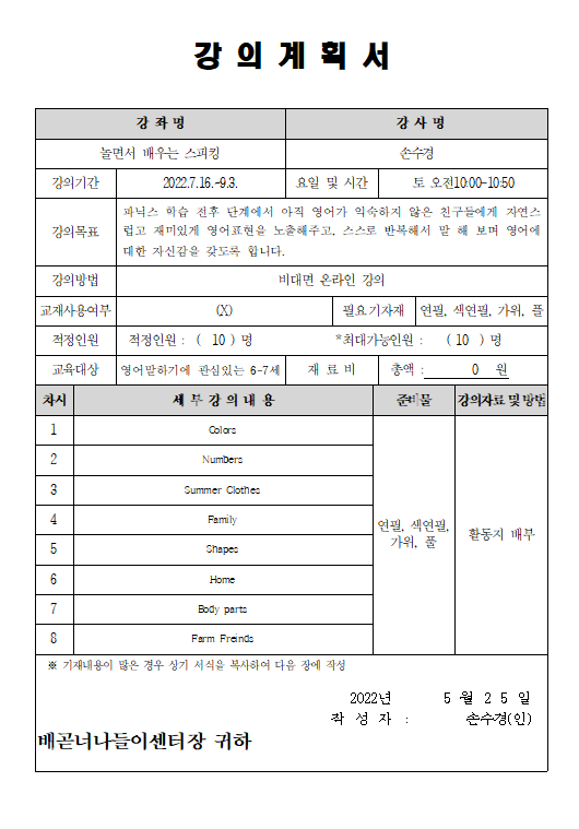 | 강좌명 | 3분기 교육프로그램 - 놀면서 배우는 스피킹 | 접수방법 | 온라인 신청(선착순 접수) |