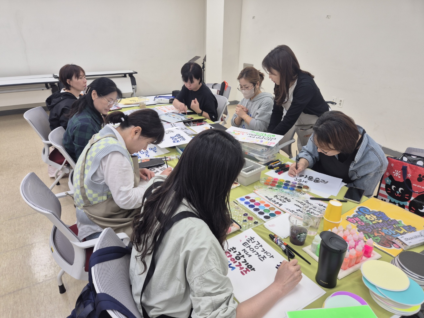 캘리캐리 동아리는 캘리그라피와 비슷할 수 있지만 다른 특성을 지닌 POP에 대해 알아보고 작품을 만들어보는 시간을 가졌구요.