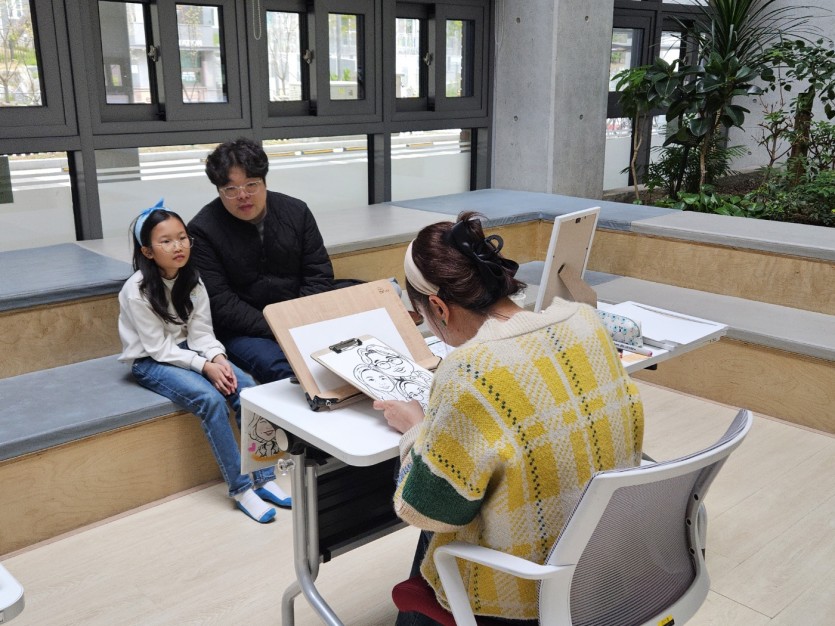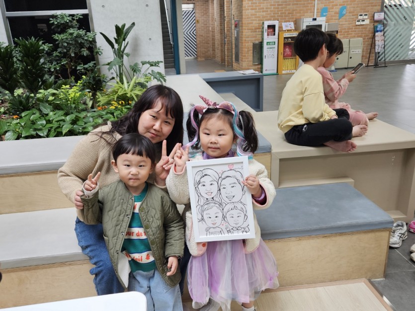 가족 캐리커쳐를 위해 아빠, 엄마, 아이들 온 가족이 총출동했어요!