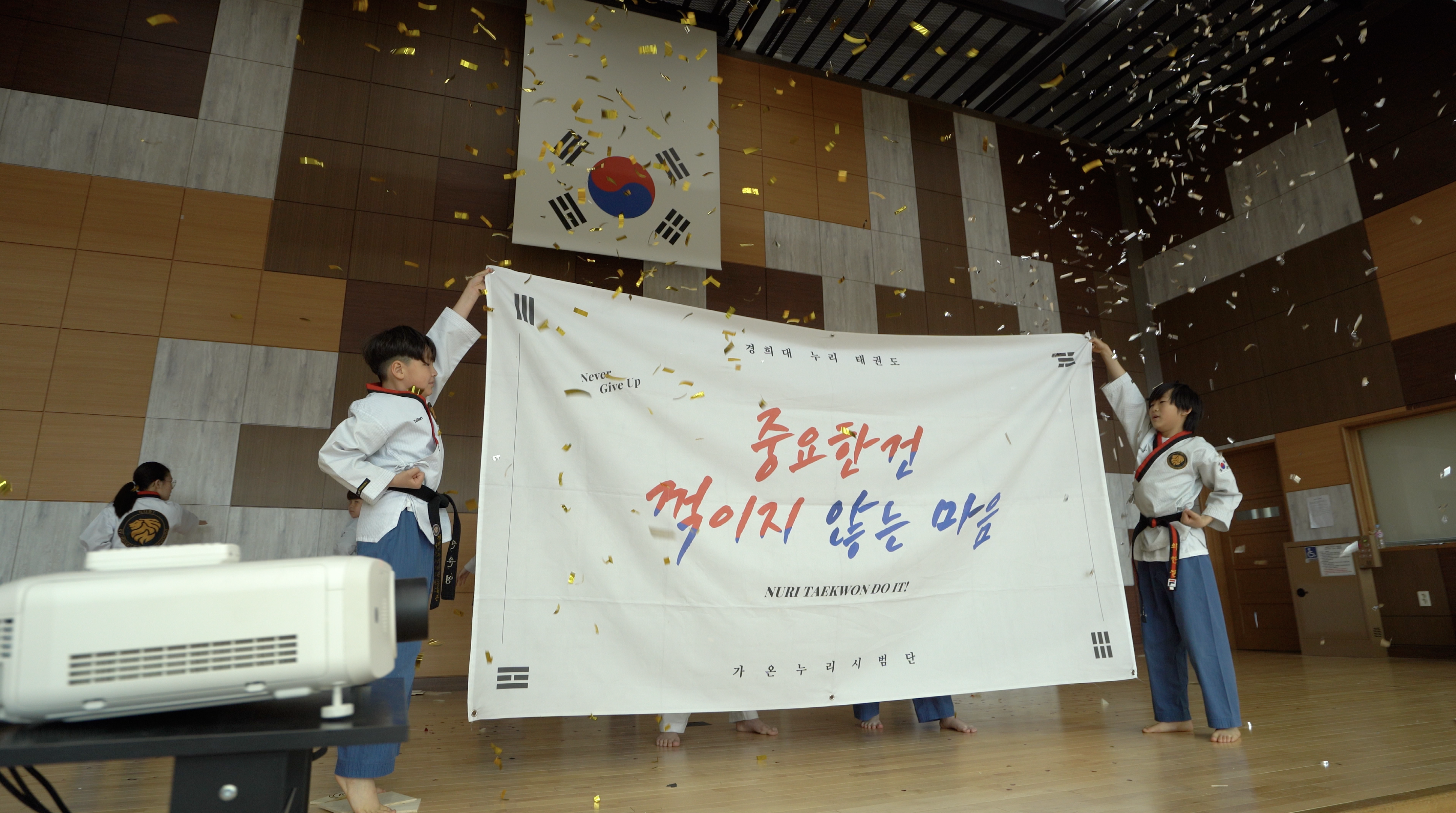 주민 마을운동회를 축하해주기 위해 '아이세상태권도' 와