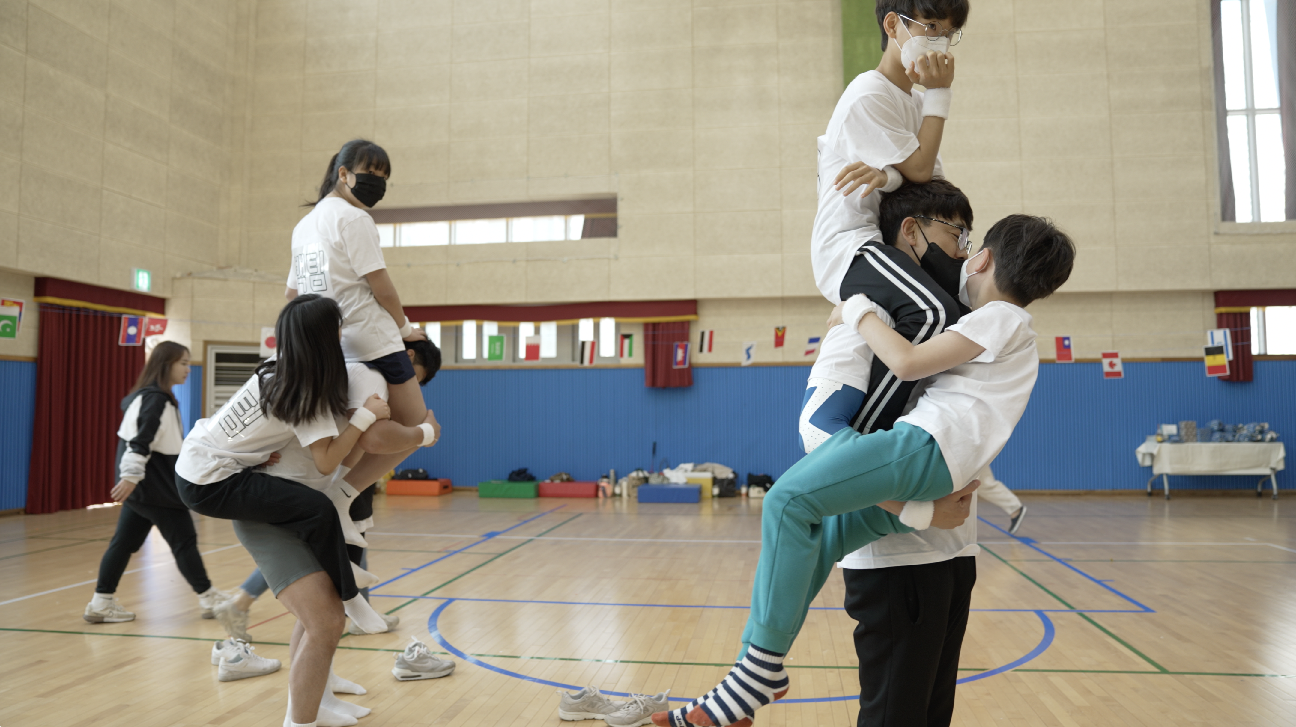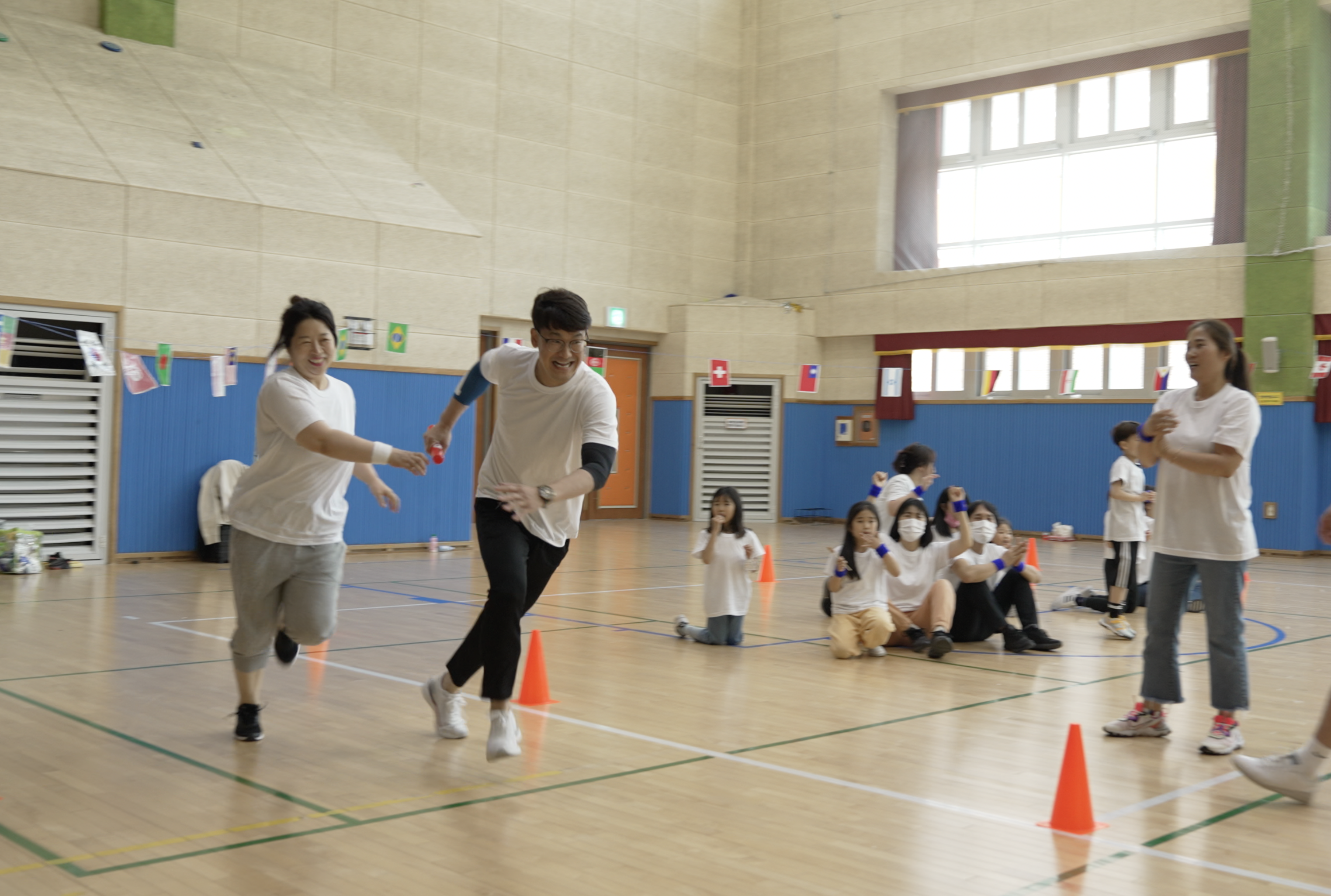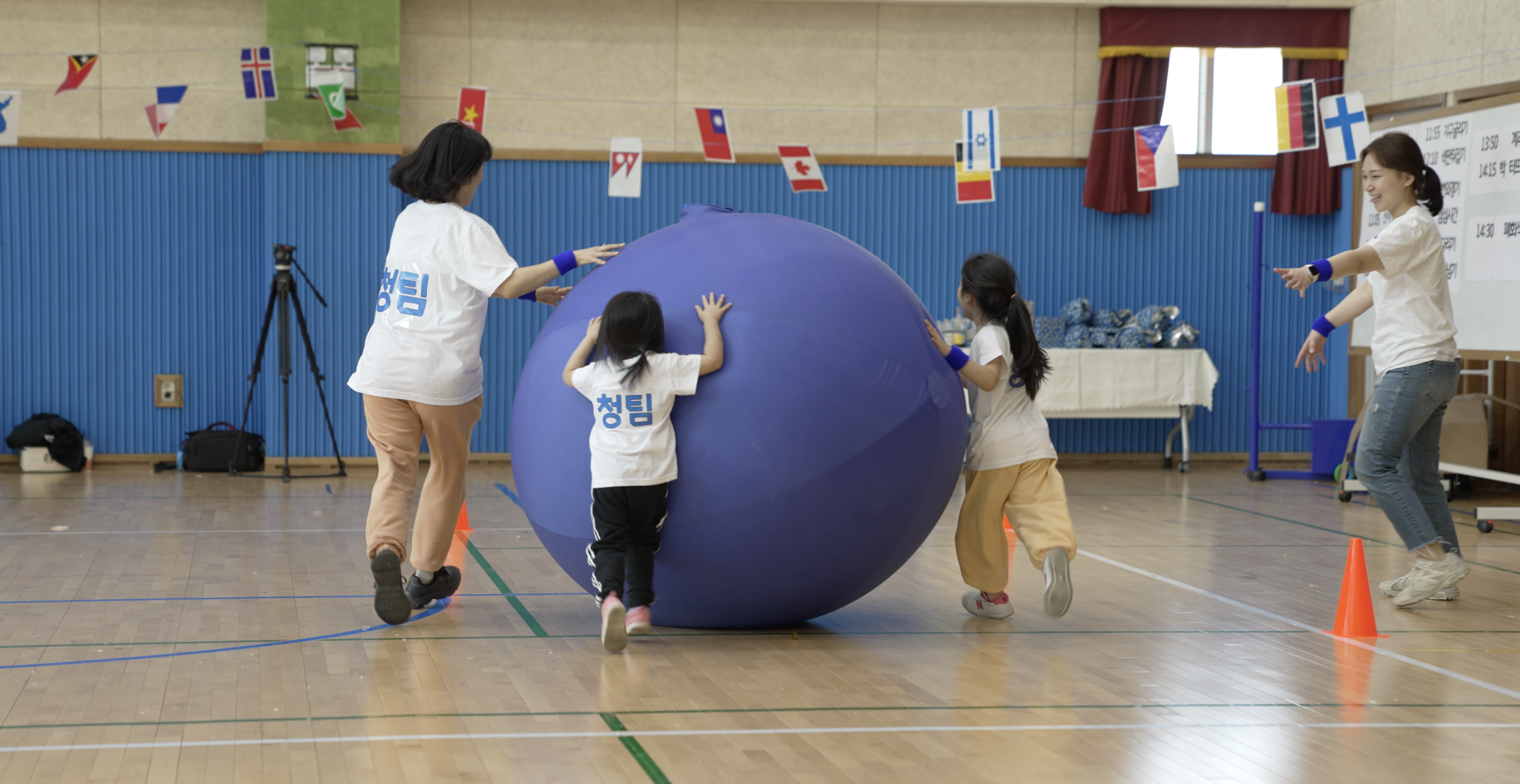 오전에 진행된 경기인 신문지 게임, 2인 3각 달리기, 지구굴리기, 색판뒤집기!
