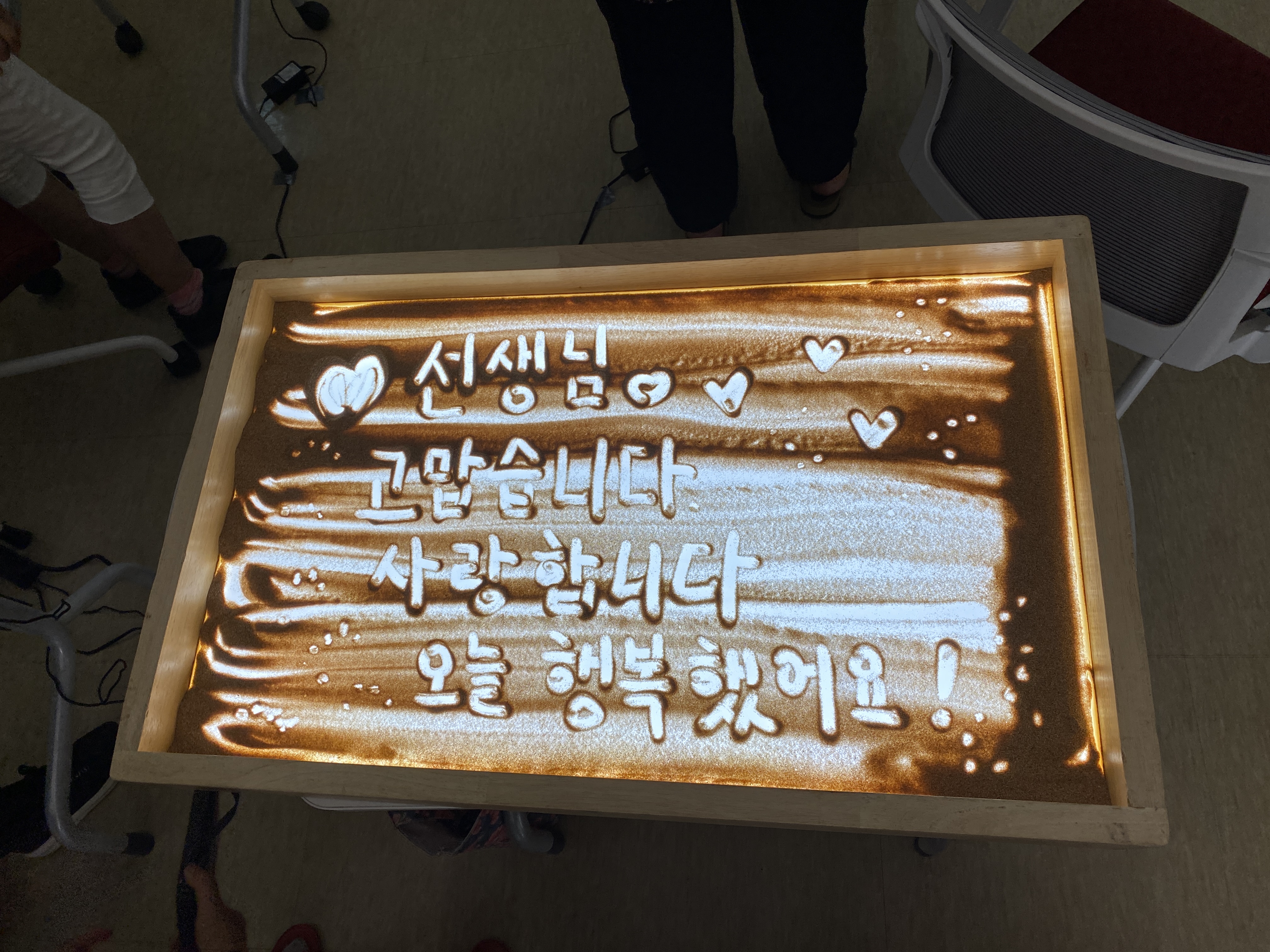 다양한 샌드아트 그리기 기법을 배울 수 있는 시간이었습니다.